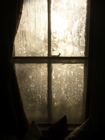 (Photos: A wintery window, top, and the suds of Dharmaloca, by Katurah, above.)