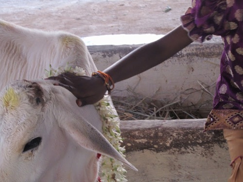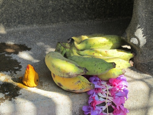 (Photo: Cow and child, above, and offering, below, both by Jaya.)