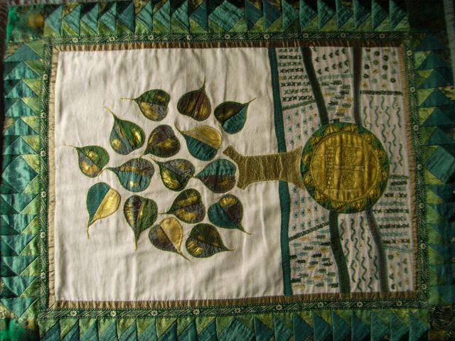 Please enjoy the photo of the beautiful patchwork wallhanging of a tree. It was inspired by the Buddhist traditon and created by Anandi-ji during the 35 day retreat. Here’s the link: