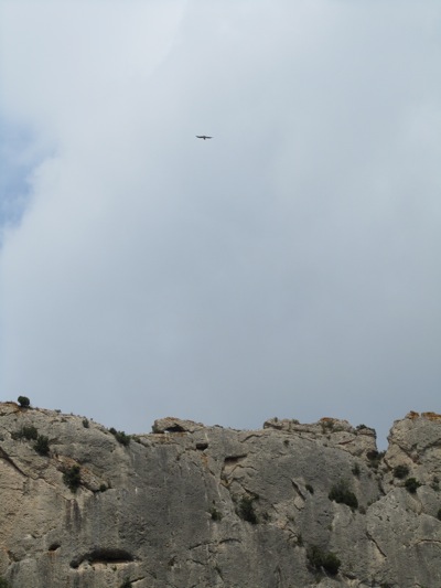 (Photo: The second radio talk, on the air live from Dharmaloca, top, and a bird soaring over the Dharmaloca cliffs.)